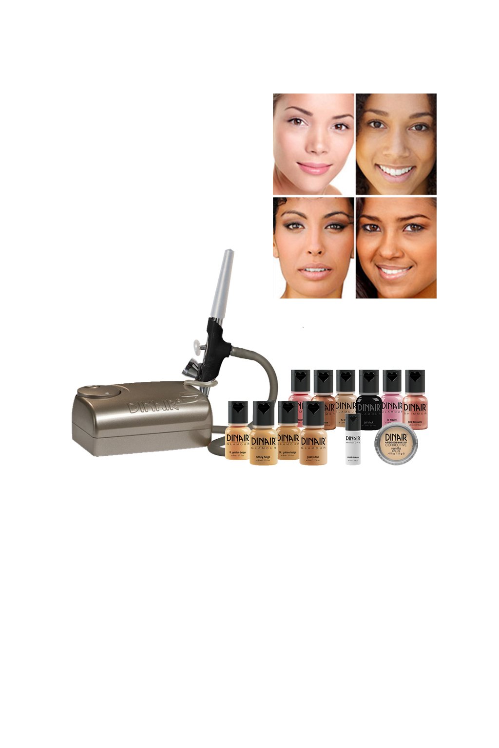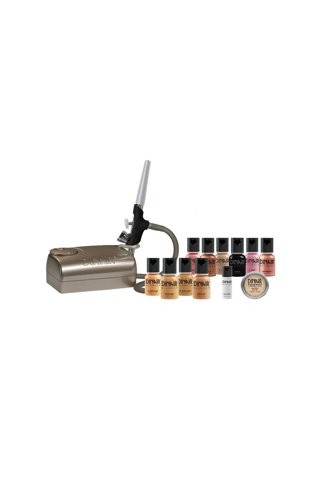 Dinair Pro Compressor is “spa quiet”. The unique airflow dial can be rotated to gradually speed up the airflow up or slow it down to help you create the most beautiful and nuanced professional results. All speeds, speed dimming control, to fit all needs. The Pro Compressor is also self cooling and can run all day. The Kit can be easily taken from home to on-set and contains all you need to create flawless, camera-ready looks. The Personal Pro System is designed to support full face and body makeup, tanning, hair coloring and more.