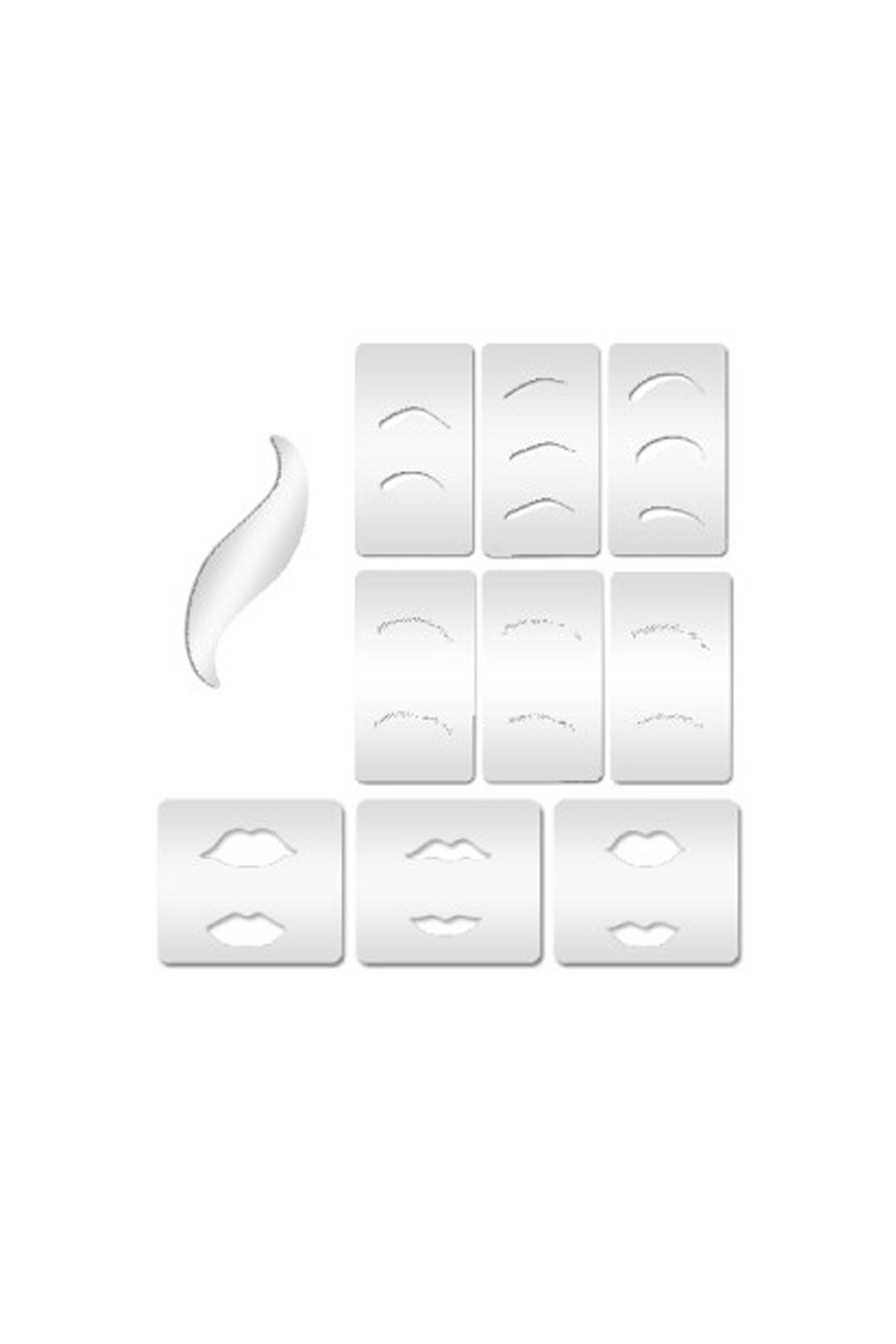 This stencil collection include: Eyeshadow Shield, Eyebrow Stencils Set, Eyebrow Hair Stencils, Lip Stencils